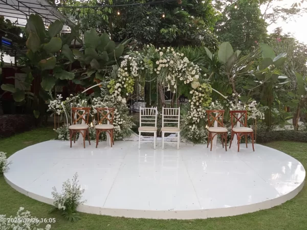 - Dekorasi akad nikah bunga segar (meja + kursi + cover), Harga mulai Rp 1.300.000