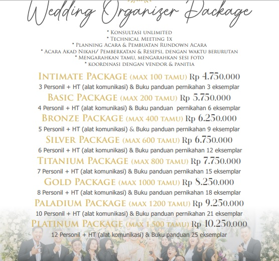 2. Paket Wedding Organizer Bronze(max 400 tamu) =IDR 6.250.000